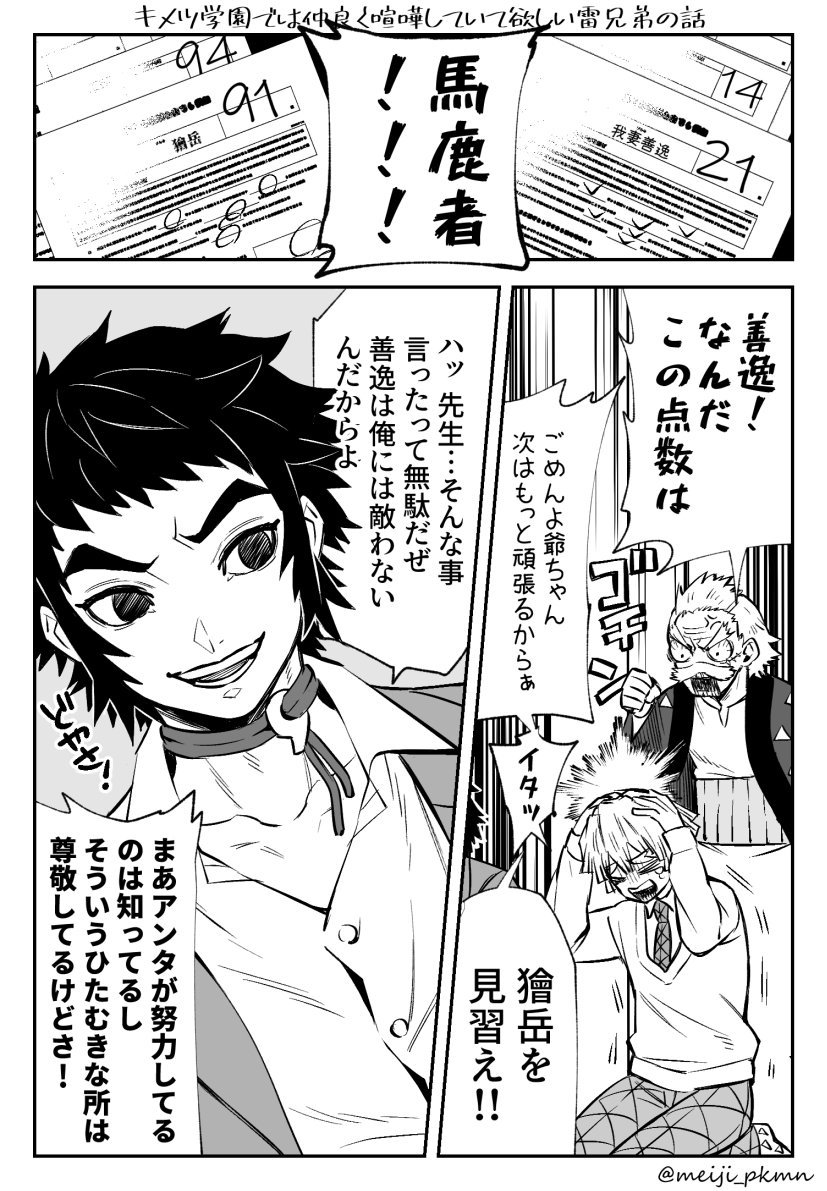 メイジ 3巻発売中 キメツ学園では仲良く喧嘩していて欲しい善逸と獪岳の話 鬼滅の刃 T Co Iwvalo3rcb Twitter